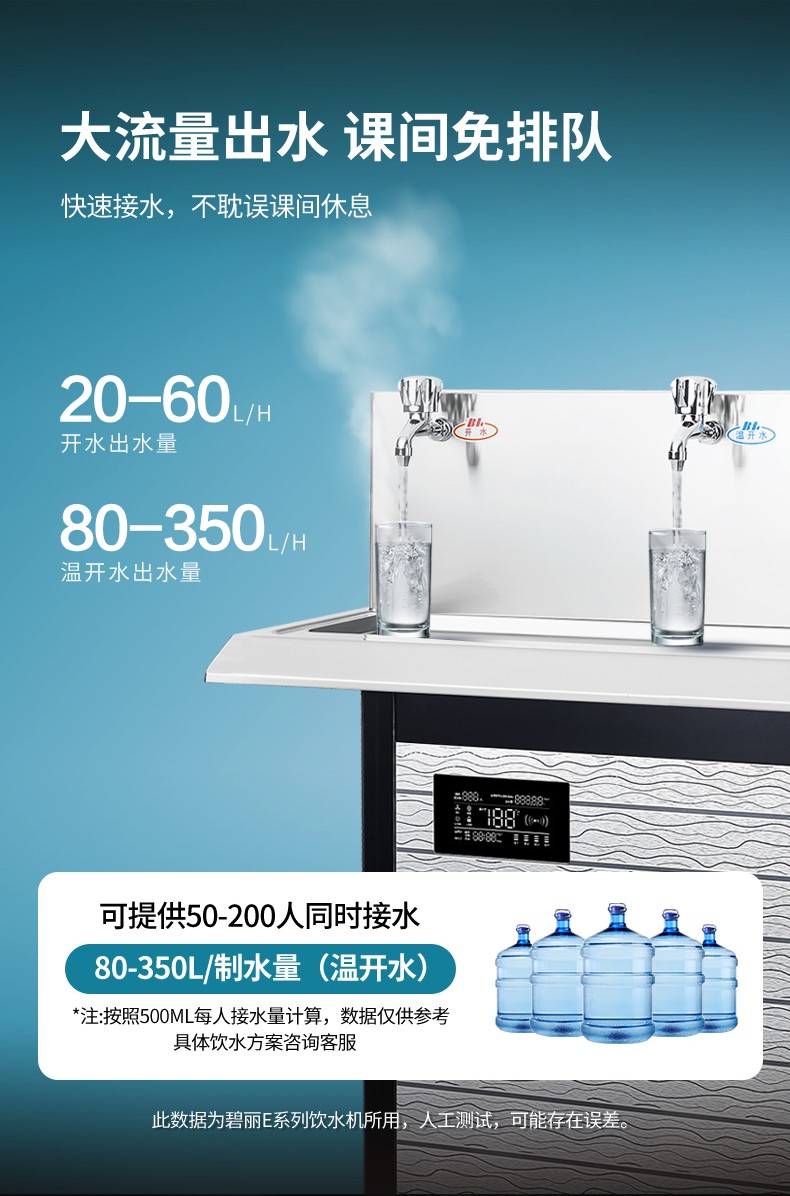 • 供 水 量:開水60升/時,溫開水350升/時